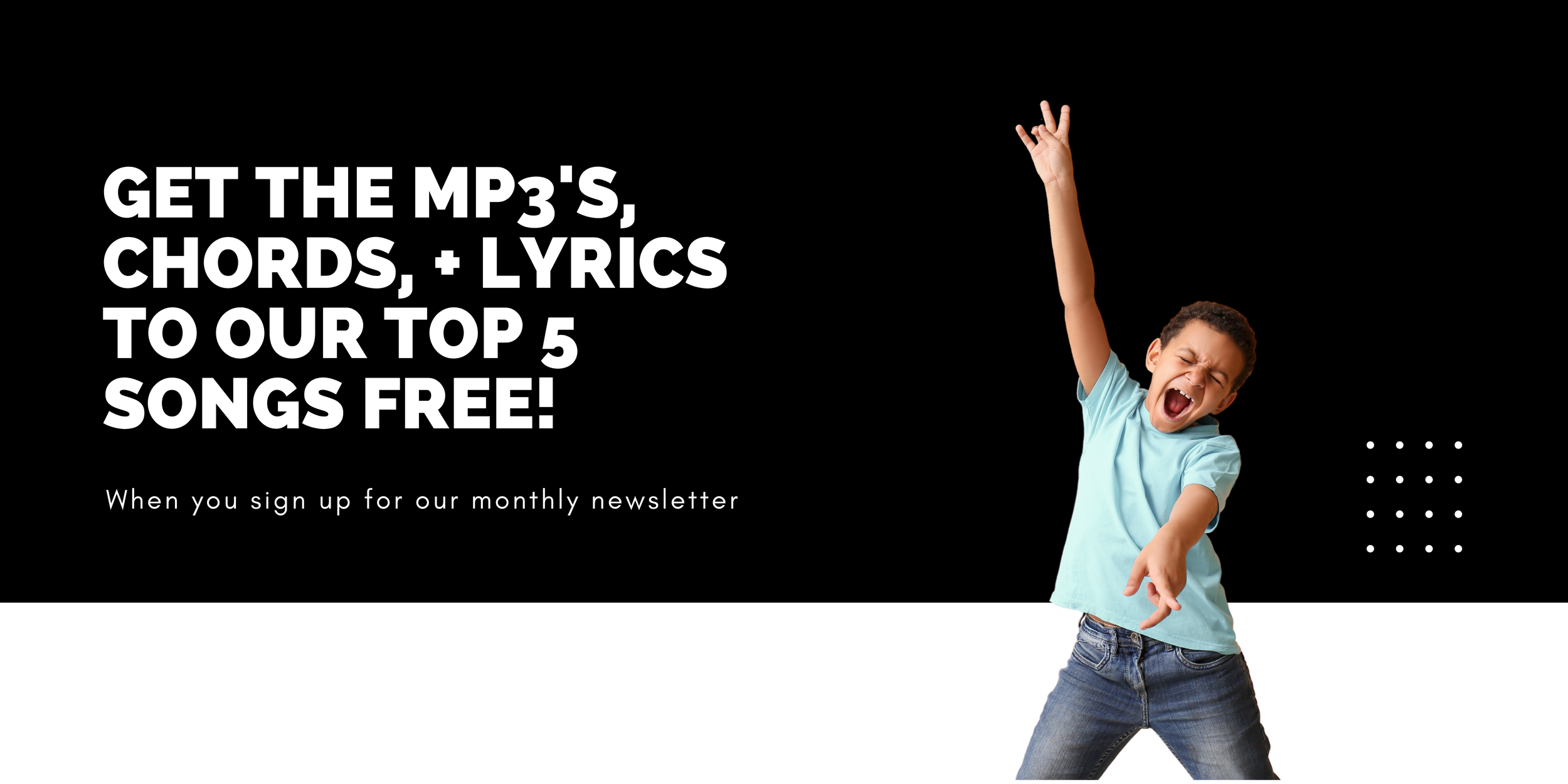 Monthly Newsletter: Song of the Month ClubSign up with your email address to receive a FREE, downloadable song once a month! SIGN UPWe respect your privacy and will not share your email address with anyone!